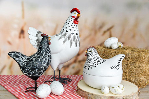 Gallo e gallina bianco e beige