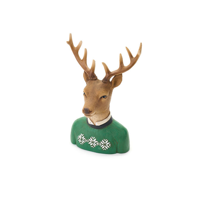 Cervo con maglione natalizio verde.