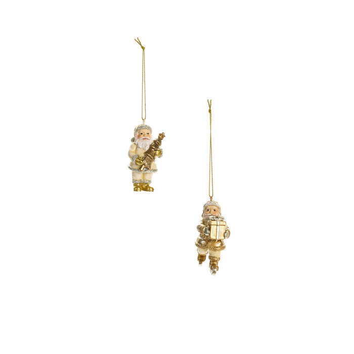 Decorazione da appendere Babbo Natale in resina con particolari oro, due versioni.