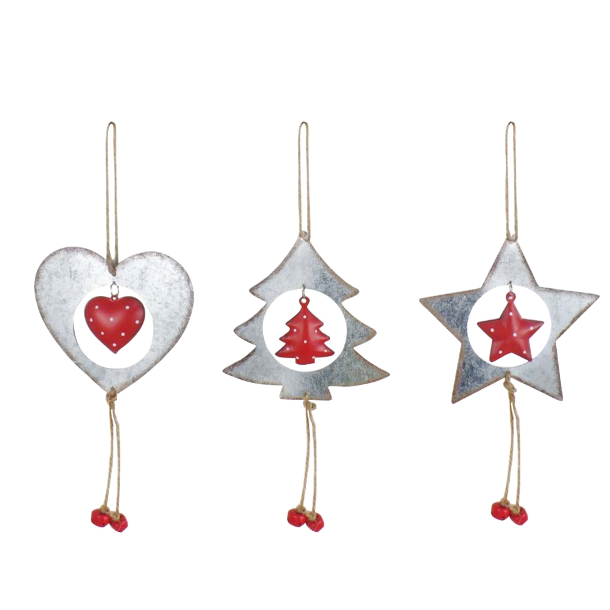 Decorazione Natalizia grigia e rossa da appendere in tre varianti.