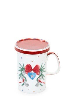 Tazza con coperchio in porcellana con scatola regalo, due versioni.