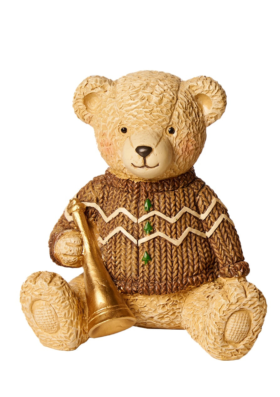 Orsetto con maglione beige, pacco regalo o tromba, in due versioni.