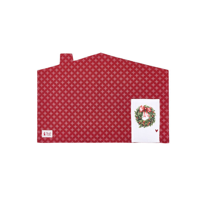 Tovaglietta americana a forma di casa in cotone con disegno natalizio e dettaglio ghirlanda.