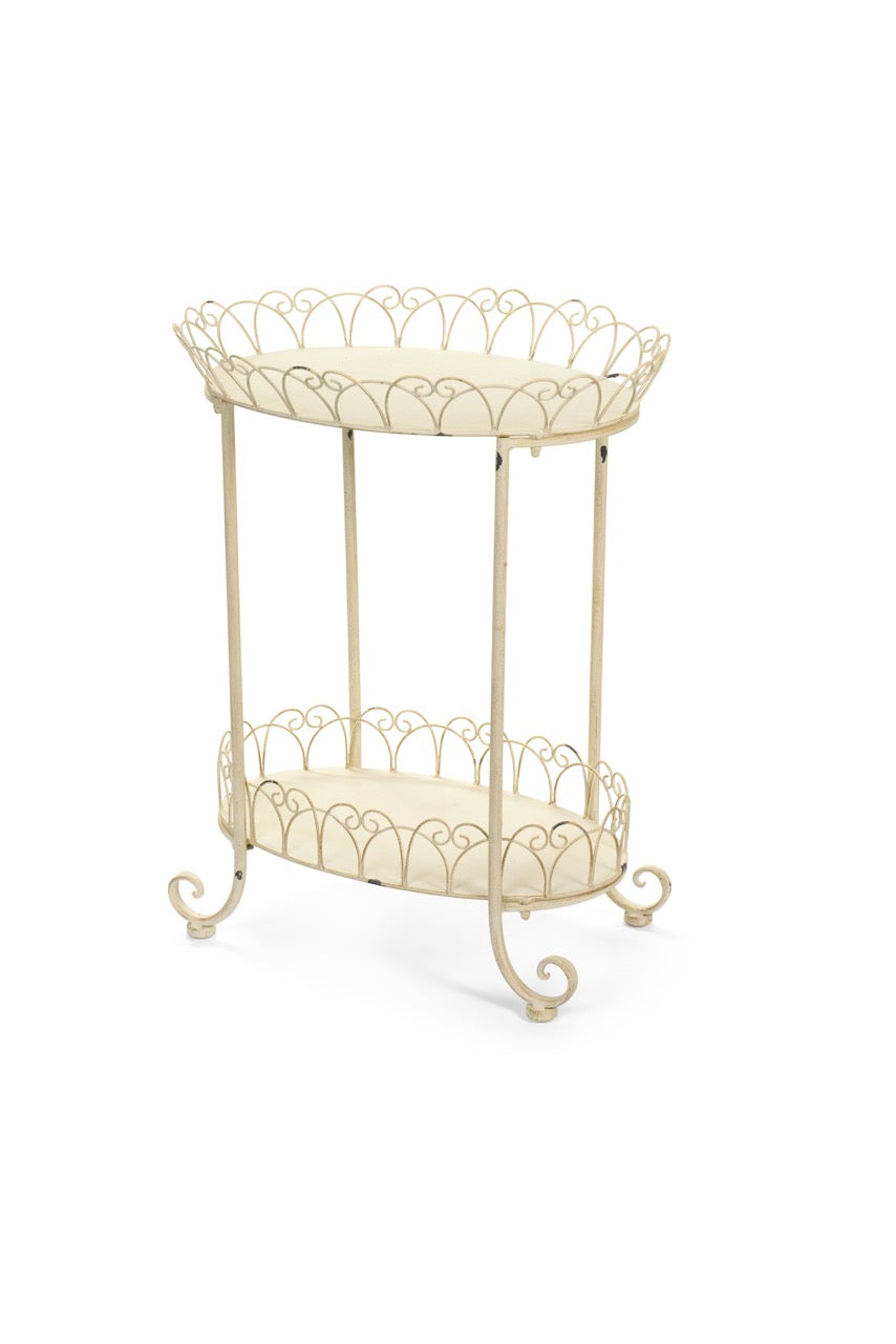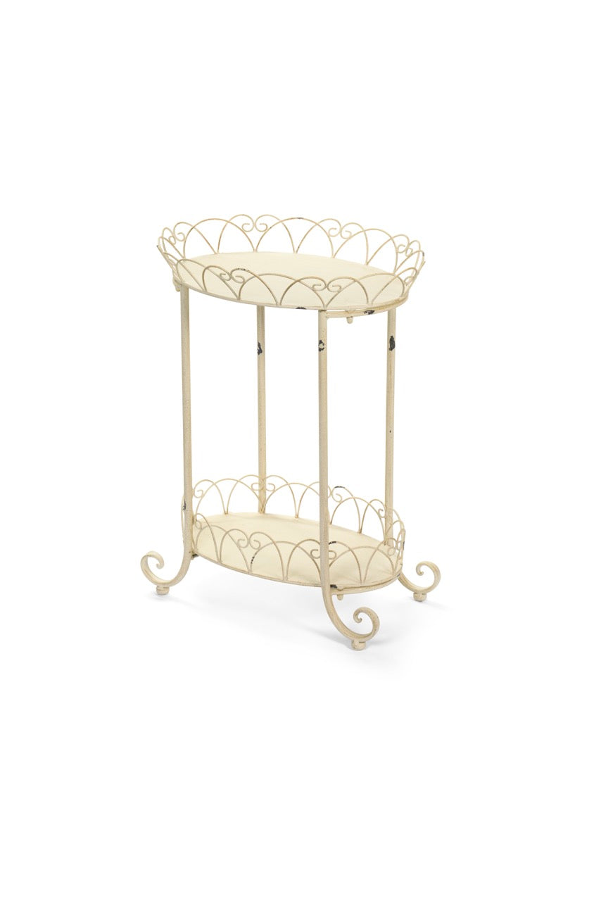 Tavolino d’arredo in metallo antichizzato, in due misure.