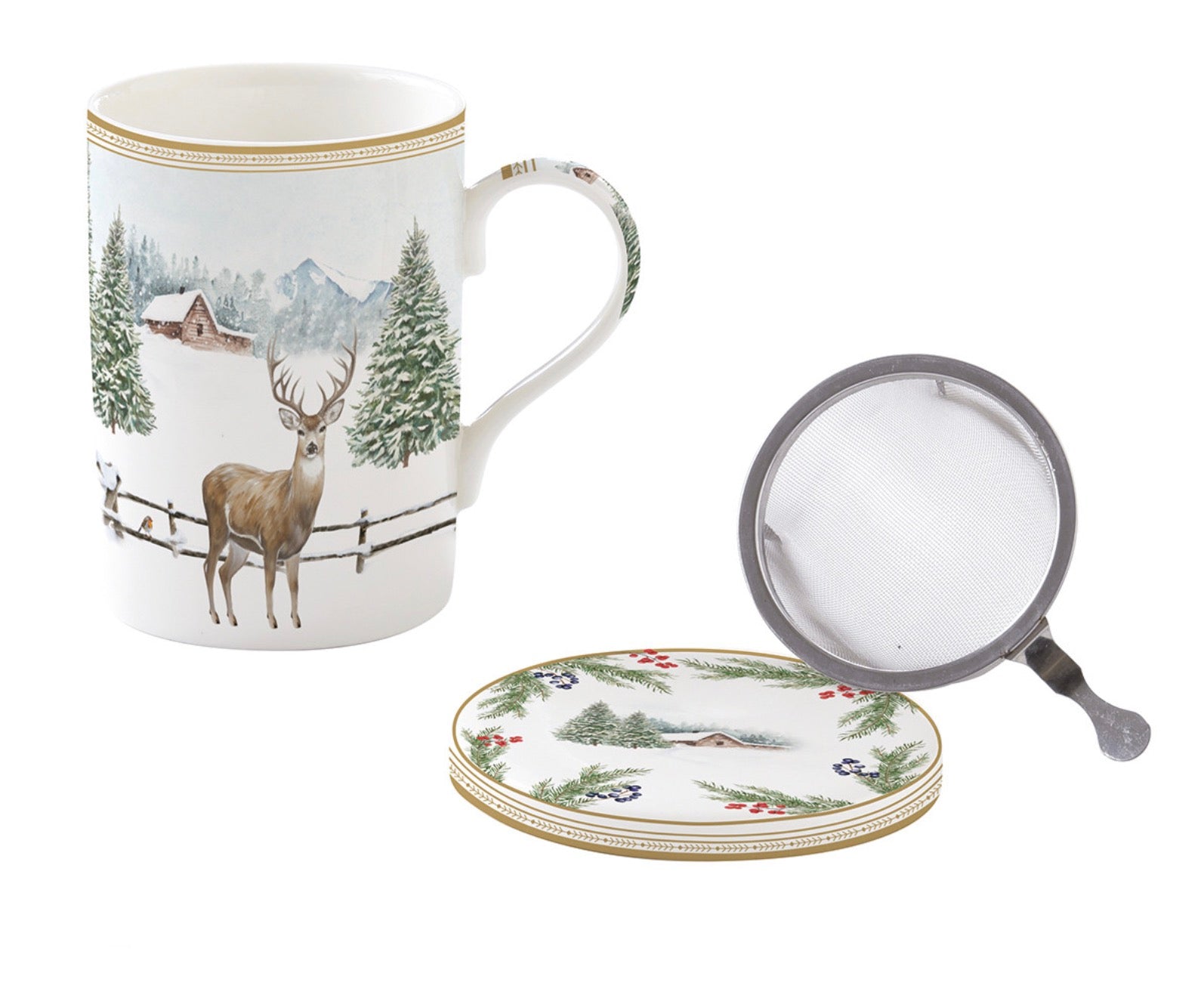 Tazza mug “White forest” con filtro e coperchio, con scatola.