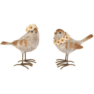 Ucellino decorativo con fiori, sui tori del marrone naturale, in due versioni.